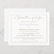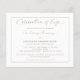 Une alternative BUDGETAIRE économique pour un format plus petit de 4,5 x 5,6” en semi-brillant de 110lbs, qui a une épaisseur similaire à une carte postale (mais ne convient pas pour une utilisation en tant que carte postale). VEUILLEZ NOTER qu'il y a UNE invitation par feuille. Invitation de style calligraphique élégant pour Célébration de la Vie et En Souvenir Affectueux et le reste du texte peut être facilement personnalisé. Une bordure simple entoure les mots. En or champagne sur fond blanc ou peut être changé en n'importe quelle couleur de votre choix via l'option de personnalisation supplémentaire.