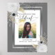 Joli fond en faux feuille avec des reflets dorés scintillants en haut et en bas. Design élégant et tendance avec une typographie script fantaisie. Tout le texte est réglable et facile à modifier selon vos besoins. Design classique de célébration de la vie avec fleurs blanches. Disponible en différentes couleurs.