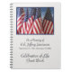 Ce carnet en spirale de la Célébration de la Vie ou du Service commémoratif est décoré avec notre photographie d'art de plusieurs drapeaux américains agitant avec un ciel nuageux dans l'arrière - plan. Très patriotique ! Facile à customiser, il suffit de modifier ou de supprimer le nom et le texte de l'exemple. Aussi utilisé comme registre funéraire. Photo originale de Marcia Socolik. Tous droits réservés © 2014 Alan & Marcia Socolik.