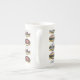 jolie porcelaine, bonne dimension effet brillant bien dans l'ensemble. Le motif et les couleurs sont réussis.Je trouve néanmoins dommage de ne pas occuper tout l'espace avc le motif car la partie rouge au dos de la tasse est trop présente et pas intéressante visuellement.