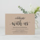 Célébrez avec nous, carte d'invitation pour mariage en fuite. Cette carte d'invitation de mariage rustique kraft est parfaite pour votre réception de mariage et la fête de célébration après le mariage. Ajoutez vos détails dans une police / lettrage noir assorti.