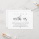 Carte d'invitation de mariage en fuite sur le thème du script noir moderne (célébrez avec nous). Elle est parfaite pour votre réception de mariage en fuite / fête de célébration après le mariage. Ajoutez vos informations dans une police / lettrage noir assorti.