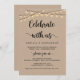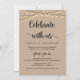 Magnifique carte d'annonce de mariage ou faire-part rustique moderne, kraft marron, guirlande lumineuse, thème cottage de ferme, (Célébrez avec nous). C'est parfait pour votre réception de mariage et fête de célébration post-mariage. Ajoutez vos détails avec la même police / lettrage. #TeeshaDerrick