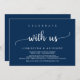 Magnifique Célébrez avec nous, Invitation, Carte d'annonce de mariage en fuite d'amour / faire-part, dans un design simple et élégant bleu marine rustique. C'est parfait pour votre réception de mariage et votre fête de célébration après le mariage. Ajoutez vos détails dans la même police / lettrage. #TeeshaDerrick