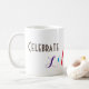 "Célébrez la vie, profitez-en pendant que vous êtes ici Coffee Mug est une petite inspiration au début de la journée et de ne pas prendre la vie si sérieusement, il est assez court comme il est.