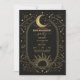 Celestial wedding invitation with a sun and moon design creates a bold and magical statement for your special day. The black background with golden celestial elements delivers a luxurious and timeless aesthetic. Perfect for evening weddings, astrology themes, or unique romantic celebrations. The oval layout offers a clean space for personalized details while maintaining visual harmony. Ideal for weddings, engagements, and artistic event invitations. A striking choice for couples seeking elegance with a mystical touch.