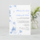 Cette belle faire-part de mariage personnalisable présente un design délicat en bleu bleu clair et blanc qui donne une apparence douce romantique et vintage avec une touche contemporaine moderne. Parfait pour un usage quotidien, ou pour des occasions spéciales comme mariages, douches, fiançailles, anniversaires, anniversaires, etc.