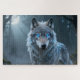 Unleash the power of the ancient wild with this Celtic Spirit Animal Wolf Jigsaw Puzzle featuring a hyper realistic 3D render in breathtaking 8K ultra detailed quality. Created with Unreal Engine 5-level realism and PBR photorealistic textures, this striking design showcases a powerful Celtic wolf spirit with glowing blue eyes piercing through a misty forest night.