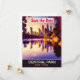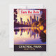 Invitation de mariage save the date Central Park, carte postale de voyage. Coucher de soleil sur le lac et les bâtiments au loin.