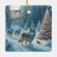 Céramique Arbre de Noël et loups en ornement de neige