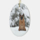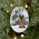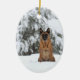 Un beau Belge Malinois joue dans les chutes de neige fraîches sur cet ornement.
