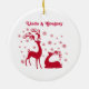 Deux cerfs communs en amour et ornement de fiançailles de Noël de flocons de neige