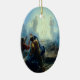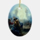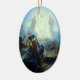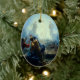 Cet ornement en céramique ovale de vacances de Noël a une peinture religieuse vintage de Jésus dans l'esprit.