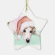 Cet ornement comporte une reproduction de ma peinture originale d'aquarelle d'un lévrier dans un casquette de Père Noël.