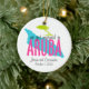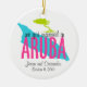 Couleurs des Caraïbe d'amusement ! Ornement parfait de souvenir de mariage avec la carte d'Aruba et l'arbre célèbre de divi de divi. Personnaliser avec vos noms et date de mariage !