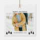 Miniature Famille Photo Vacances en Céramique Ornement. Arbre rustique | Vacances modernes. Customisez avec votre propre photo et texte.