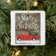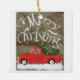 Un type avec une barbe dans un chapeau de Père Noël qui ramène à la maison un arbre de Noël coupé.