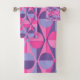 Cet ensemble de serviettes est décoré dans un style art déco de cercles rose et violet à deux tons à l'intérieur de triangles rose et violet à deux tons.