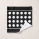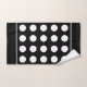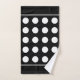 Ensemble de serviettes de bain élégant moderne et stylé avec des cercles blancs sur fond noir.