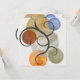 Design géométrique d'inspiration boho avec cercles vert, beige, bleu et orange, textures uniques et recouvrements floraux.