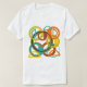 Ce t-shirt a un design moderne du milieu du siècle de cercles et demi-cercles en orange, jaune, vert, marron et turquoise sur un terrain de blanc. Si vous voulez le même design avec des couleurs différentes, envoyez-moi un message.