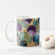 Célébration tranquille de l'imperfection et de la transience, cette tasse présente des cercles d'aquarelle doux dans des teintes apaisantes de jade, de prune et d'indigo, délicatement entrelacées avec des branches d'or. Enracinée dans l'esthétique wabi-sabi japonaise, elle évoque un sens de la douce beauté, de l'immobilité et de l'art d'embrasser l'incomplet naturel.