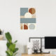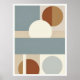 Un imprimé d'art mural géométrique contemporain présentant des cercles audacieux et des lignes épurées dans les tons muets de bleu, beige et terre cuite. La composition abstraite moderne apporte un look élégant et équilibré aux salons, chambres, bureaux ou murs de galerie.