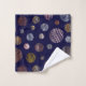 Abstrait or élégant, or rose, argent et cuivre cercles métalliques en motif sans couture avec texture rayée dessinée à la main isolée sur un arrière - plan bleu foncé