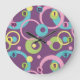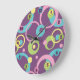 Un arrière - plan violet plein de vitalité est orné d'un motif funky de cercles, de points et d'anneaux dans une variété de couleurs vives, dont le rose, le vert, le bleu et le jaune.