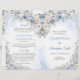 Boho Elegant Dusty Blue and Ivory Flowers Ceremony programme plié mariage Ce magnifique design floral boho bleu boho tendance a présenté aquarelle peinte à la main hydrangea bleu hiver poussiéreux mélangé fleurs bleu clair et crème roses, et des fleurs blanches et combinées modernes script de calligraphie. Т son irrésistible symphonie colorée est élégamment posée sur un arrière - plan bleu poussiéreux d'aquarelle. Des fleurs d'hiver en ivoire et bleu poudré délicatement enveloppent le texte dans la partie centrale du design comme si une étreinte gracieuse et donne une sensation sophistiquée à l'ensemble du design rustique. Oui, vos invités seront vraiment fascinés - envoyez-leur cette invitation vraiment impressionnante et sûrement votre célébration du Parti restera longtemps dans les mémoires. Dans ce design exquis, nous avons préparé tous les éléments nécessaires à votre fête de boho - tels que des jeux, des affiches de bienvenue, des panneaux de table et bien plus encore, afin que vous puissiez obtenir un ensemble complet de ce design bohème floral minimaliste exceptionnel avec une aquarelle bleu poussiéreux hydrangées, bleu poudreux et bleu glace fleurs mélangé roses blanches. Contactez-moi pour les articles correspondants ou pour la personnalisation, Blush Roses © ses