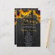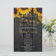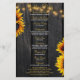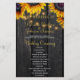 Modèle de programme de cérémonie de mariage rustique élégant et économique, avec de beaux bouquets de tournesols orange jaune vif et des guirlandes de lumières scintillantes sur un fond en bois brun foncé de style campagnard. +++++++++++ + Personnalisez-le avec vos informations. +++++++++++ Convient aux mariages rustiques, champêtres, vintage chic, en plein air, été ou automne.