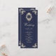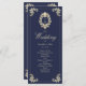 Élégant programme de mariage baroque bleu marine et or avec un monogramme victorien vintage, des détails ornés de cadre et des plats classiques. Parfait pour les mariages traditionnels, ce programme de cérémonie à double face inclut la commande de service et les détails de la fête de mariage. Coordonné avec la suite mariage baroque marine et dorée complète pour un look intemporel et luxueux.