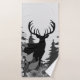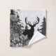 Le cerf émerge des pins et est entouré de fleurs sauvages dans un design faunique simple.