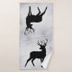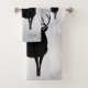 Serviette sertie d'une image avec un renne en silhouette noire avec de gros bois.