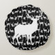 Ce coussin rond de jolie conception de cerfs communs est parfait pour n'importe qui qui aime des cerfs communs, des animaux, la faune, et des conceptions d'amusement ! Comporte plusieurs petites silhouettes blanches rustiques de cerfs communs sur un arrière - plan de noir avec une grande daine blanche de silhouette sur l'avant, dos de mâle dessus. Ce coussin de cerfs communs est parfait pour le salon, repaire, la chambre familiale, cabine de famille sur le lac, et naturellement il fait un grand cadeau.
