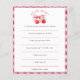Ajoutez une touche sucrée à votre baby shower à thème cerise avec cette carte d'activité "Cher Bébé". Les clients peuvent remplir des espoirs et des prédictions sincères pour le petit, créant un souvenir que les parents chériront pour toujours. Conçu avec des cerises, des arcs et une bordure en vichy rose, ce jeu correspond parfaitement à votre décor de cerise sur le baby shower supérieur.