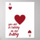 Apportez une étincelle ludique de romance à votre espace avec cette mignonne affiche murale de l'as de cœur, qui présente la douce phrase « tu es la cerise sur le gâteau, bébé ». Conçue avec une palette audacieuse rouge et blanc, cette œuvre d'art mélange un design minimaliste de carte à jouer avec une typographie expressive écrite à la main pour un look moderne, aguicheur et inoubliable.