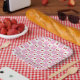 Ces jolies cerises , petites fleurs , assiettes en papier à motif à carreaux rose et blanc sont parfaites pour les anniversaires , la baby shower ou la réunion de famille estivale . Cherchez les gobelets en papier assortis .