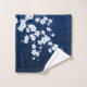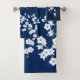 Branche classique en fleurs de cerisier blanc sur un arrière - plan bleu marine. Design botanique mignon aux couleurs maritimes pour lui et elle. Raccord rideau de douche, tapis de bain et distributeur de savon / porte-brosse à dents disponibles.