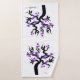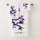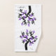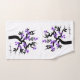 Cerisier de sakura pourpre et noir inséparables avec serviette de bain fleurie. Il comprend un sakura noir avec des fleurs violettes et des coeurs noirs au centre et une paire d'inséparables. Votre nom est écrit dans une police de style script.