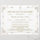 Hermoso Certificado de Bautismo con detalles en oro. Un recuerdo sagrado y elegante para el día del bautizo de tu hijo o hija. Plantilla editable en Zazzle, incluye el versículo de Mateo 28:19-20. Perfecto para enmarcar y conservar como un tesoro familiar. ¡Personalízalo con el nombre de la parroquia y la fecha! ✨