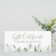 Certificat Cadeau Aquarelle Rustique de Verdure. Parfait pour un salon de beauté, un coiffeur, un maquilleur ou un cosmétologue.