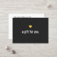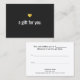 Un design amusant et mémorable avec une image numérique du coeur de feuille d'or. Une carte cadeau super mignonne sous le déguisement d'un certificat cadeau pour les deux parties. Pour plus de matériel marketing de mise en correspondance, de conception personnalisée ou de demande de logo, veuillez me contacter à maurareed.designs@gmail.com et je répondrai dans les 24 heures. Pour l'expédition, cardstock demande et prix contactez Zazzle directement.