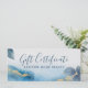 Certificat cadeau d'entreprise de botanique aquarelle bleu or. Parfait pour un salon de beauté, un coiffeur, un maquilleur ou un cosmétologue.