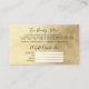 Ce carte de visite de certificat cadeau girly et glamour est parfait pour une femme d'affaires professionnelle élégante et branchée. Il présente des gouttes de parties scintillant brillantes d'or faux imprimé sur le dessus d'un arrière - plan de feuille d'or. La typographie est un élégant script cursif avec une police serif moderne pour correspondre. C'est chic, joli, unique et luxueux; la façon idéale de faire de la publicité pour votre entreprise et de styliser votre matériel de marketing et de publicité pour vos clients. ***REMARQUE IMPORTANTE DE CONCEPTION : Pour toute demande de conception personnalisée comme les demandes de produit correspondant, les changements de couleur, les changements de placement ou toute autre demande de modification, veuillez cliquer sur le bouton "message" ou envoyer un courriel au concepteur directement à lafemme.art@gmail.com. Vous pouvez même lui envoyer par courriel une demande pour un design entièrement personnalisé et nouveau.