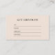 Ce carte de visite de certificat-cadeau beige présente un agencement simple avec des icônes de médias sociaux (Tiktok, Instagram, & Facebook). Parfait pour toutes les entreprises créatives et les professionnels qui aiment la simplicité. Des papeteries et des produits de bureau correspondants sont disponibles dans ma boutique BaraBomStudio.