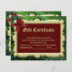Customisez ce certificat cadeau en ligne, et utilisez-le pour une petite entreprise, un cadeau personnel ou un échange de cadeaux d'entreprise de service! Doté de branches de pins à cadre doré et d'un arc bordeaux dressé.