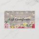 Elégant Vintage moderne Chic String Lights et Floral avec Natural Rustic Wood Texture Arrière - plan Salon ou Boutique Certificat cadeau modèle de carte d'affaires. Un élégant salon ou un Modèle de certificat-cadeau Boutique. Avec des lumières en bois et en cordes Design avec des fleurs d'aquarelle colorées. Parfait pour un salon de beauté, un bar à ongles et des professions connexes.