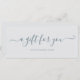 Certificat cadeau simple et élégant minimaliste script bleu gris. Cet élégant certificat Cadeau de script s'intègre parfaitement dans une enveloppe professionnelle standard #10. Parfait pour votre marque et votre entreprise.