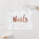 Un certificat cadeau moderne et élégant Nails artiste carte de visite avec lettrage à la main moderne typographie de style brosse en feuille d'or rose sur un arrière - plan en marbre blanc tendance et élégant. Si vous avez besoin de personnalisation, n'hésitez pas à me contacter